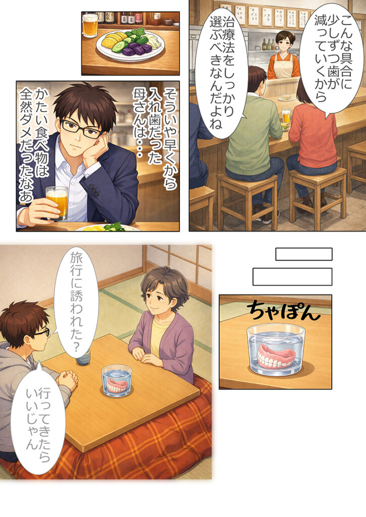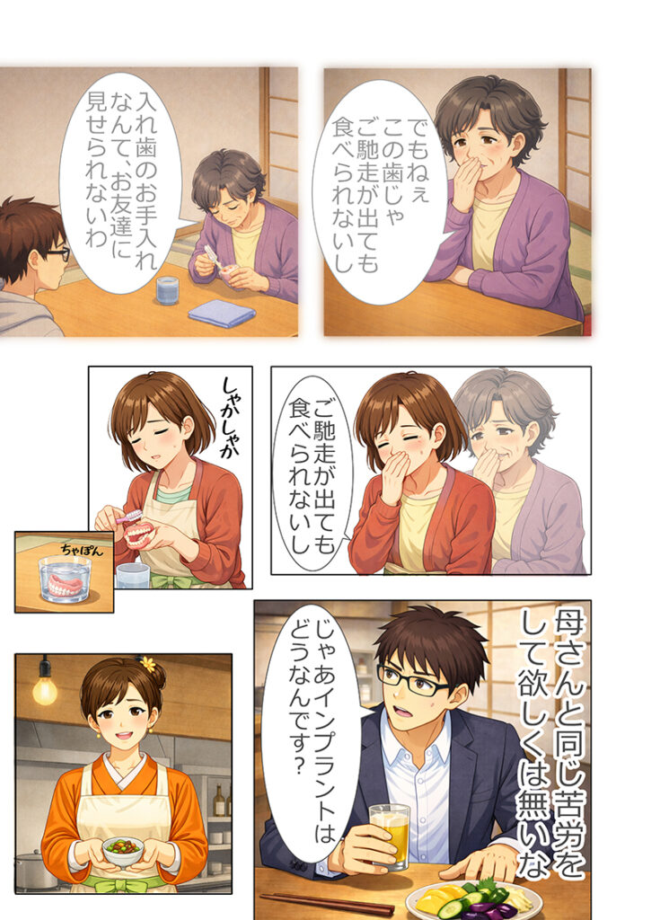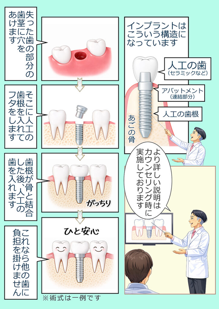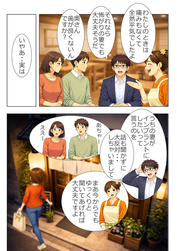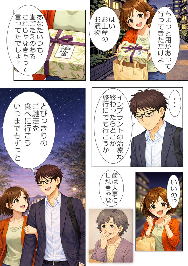 当院でインプラント治療を受けた30代患者様の体験を、動画とマンガでご紹介します。「インプラントが気になるけど怖い」「費用や期間が不安」という方のご参考になれば幸いです。