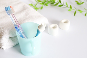 残存歯や歯肉の健康維持も重要です。歯ブラシやフロスでプラークコントロールを行い、歯周病や二次カリエスの予防をします。