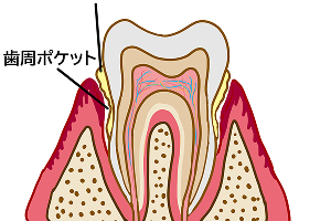 そのまま放置すると、歯を支える骨が少しずつ溶けていき「歯周炎」に進行します。